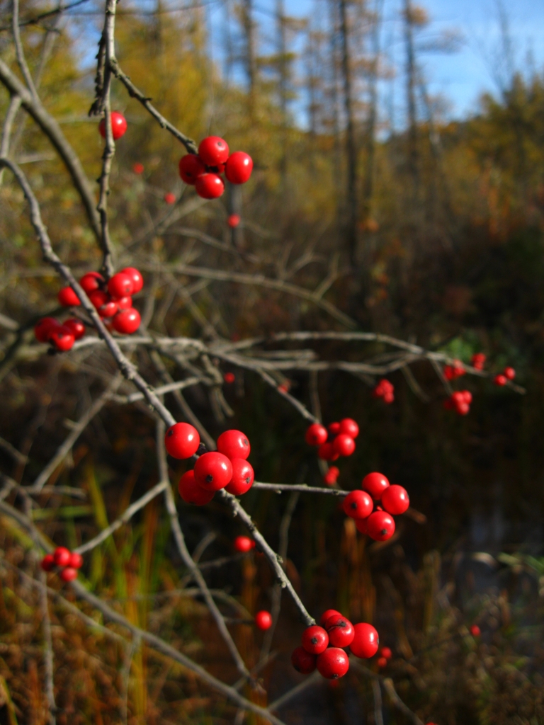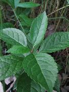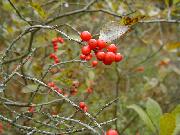 Notes: rounded shrub with oval leaves; white flowers bear bright red berries in fall.