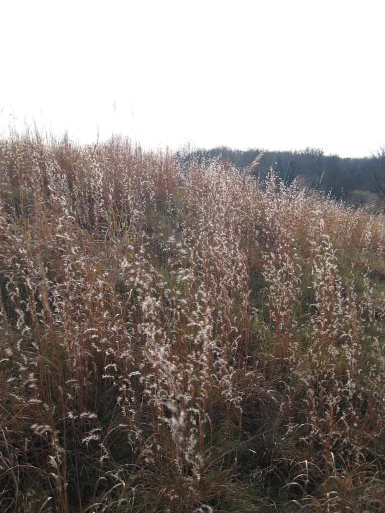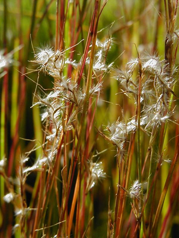 Notes: a warm-season perennial grass; grows a compact clump of bluish-green leaves turning orange to red in fall; silky seeds throughout upper stems; works well as an ornamental.